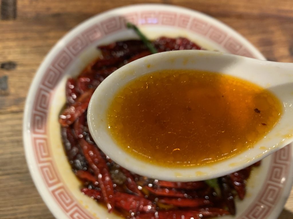 スープは、写真を見ての通り透き通った赤色をしていて、あっさりした味わいだ。
