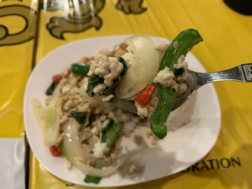 香ばしく炒められたひき肉がパラっとしたタイ米によく合う。