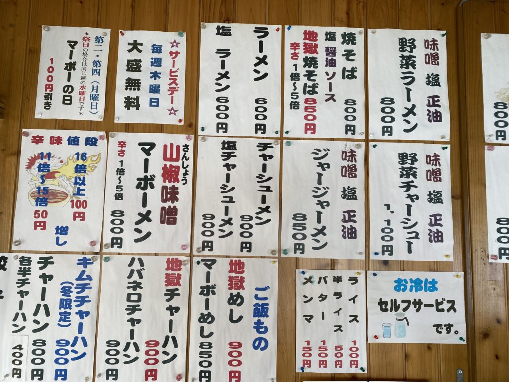 - 地獄ラーメンは辛さレベル調節可能