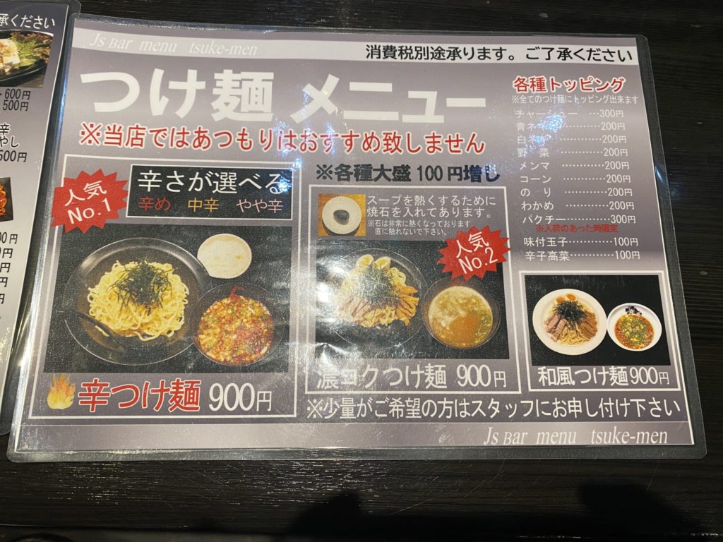 今回は、こちらにある『辛つけ麺(辛め)』にチャレンジしていきたいと思います。