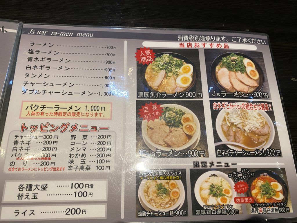 | ジェイズラーメン | 900円 |