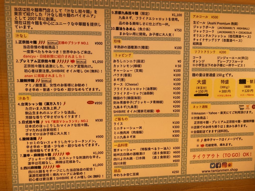 『坦々麺 辣椒漢 駒込店』の激辛メニュー